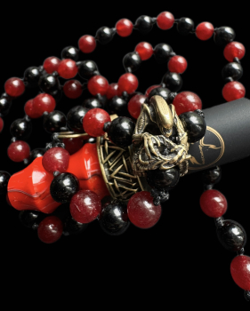 Персональный мундштук ручной работы по мотивам фильма «Чужой». Состоит из бусин черного и красного АГАТА, центрального звена с ксеноморфом.
