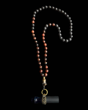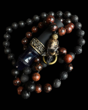 Бусы ручной работы для персонального мундштука. Состоит из бусин натуральной ЯШМЫ , ВУЛКАНИЧЕСКОЙ ЛАВЫ и звеньев из бронзы и латуни.