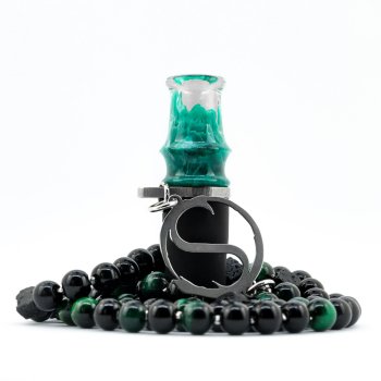 Материалы: агат зеленый кошачий глаз вулканический камень мундштук из полиэфирной смолы логотип из стали металлическое кольцо силикон