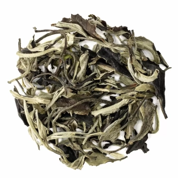 Бай Му Дань - китайский белый чай. Этот чай изготавливают из верхних полураспустившихся листьев и почек чайных кустов сорта Дабайча. Бай Му Дань успокаивает нервную систему, приводит в равновесие душевное состояние.Цвет настоя: светлый, янтарно-золотистый, аромат: душистый, фруктовый, вкус: мягкий, сладковатый, с ореховыми и медовыми нотками.Заваривать белый чай надо обязательно мягкой и не слишком горячей водой 60-85°С.