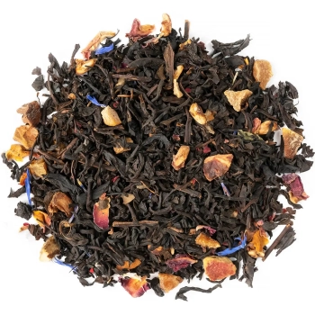 Состав: Купаж черного индийского, цейлонского чая, гранат, груша, цветы сафлора, лепестки розы, ноготки, василек белый.
