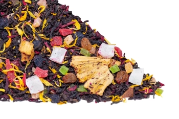 черный цейлонский, цедра апельсина, лепестки розы, цветы подсолнуха, лепестки синего василька, лепестки сафлора