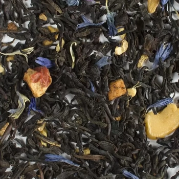 Черный чай, цедра апельсина, елочки из прессованного сахара, сафлор, миндаль, цветы мальвы, ягоды годжи, корица