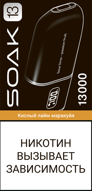 Эл. сиг. SOAK 13 на 13000 Sour lime-passion fruit (Кислый лайм-маракуйя) 2%