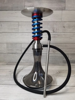 Характеристики кальяна: 1. кальян выполнен из нержавеющей стали aisi 304; 2. декоративная пружина и гайки сделаны из алюминия, покрыты порошковой краской; 3. полностью разборная модель, состоящая из 14 частей; 4. высота на колбе 50 см; 5. высота шахты 28 см; 6. высота погружной части 22 см; 7. съемный диффузор; 8. магнитный коннектор; 9. диаметр шахты 11 мм; 10. диаметр основания под уплотнитель 38 мм; 11. круглое блюдце с гравировкой: диаметр 200мм, толщина 1мм; 12. мундштук из нержавеющей стали: длина 350 мм, внутренний диаметр - 11 мм. В комплекте: