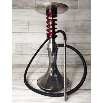 Static Easy hookah - a completely movable model Height on the glass bowl -46 cm Down stem height - 21 cm Removable diffuser Magnet connector Stem diameter - 11 mm Connector Diameter (Internal) - 8 mm Diameter of the base under the seal - 38 mm Hookah made of aisi 304 stainless steel Decorative spring and screws are made of aluminum, powder coated.