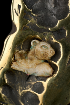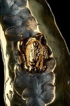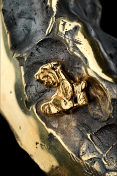 Материал художественного элемента: бронза, серебро,бронза покрытая золотом, патинированный рог лося, нефрит
