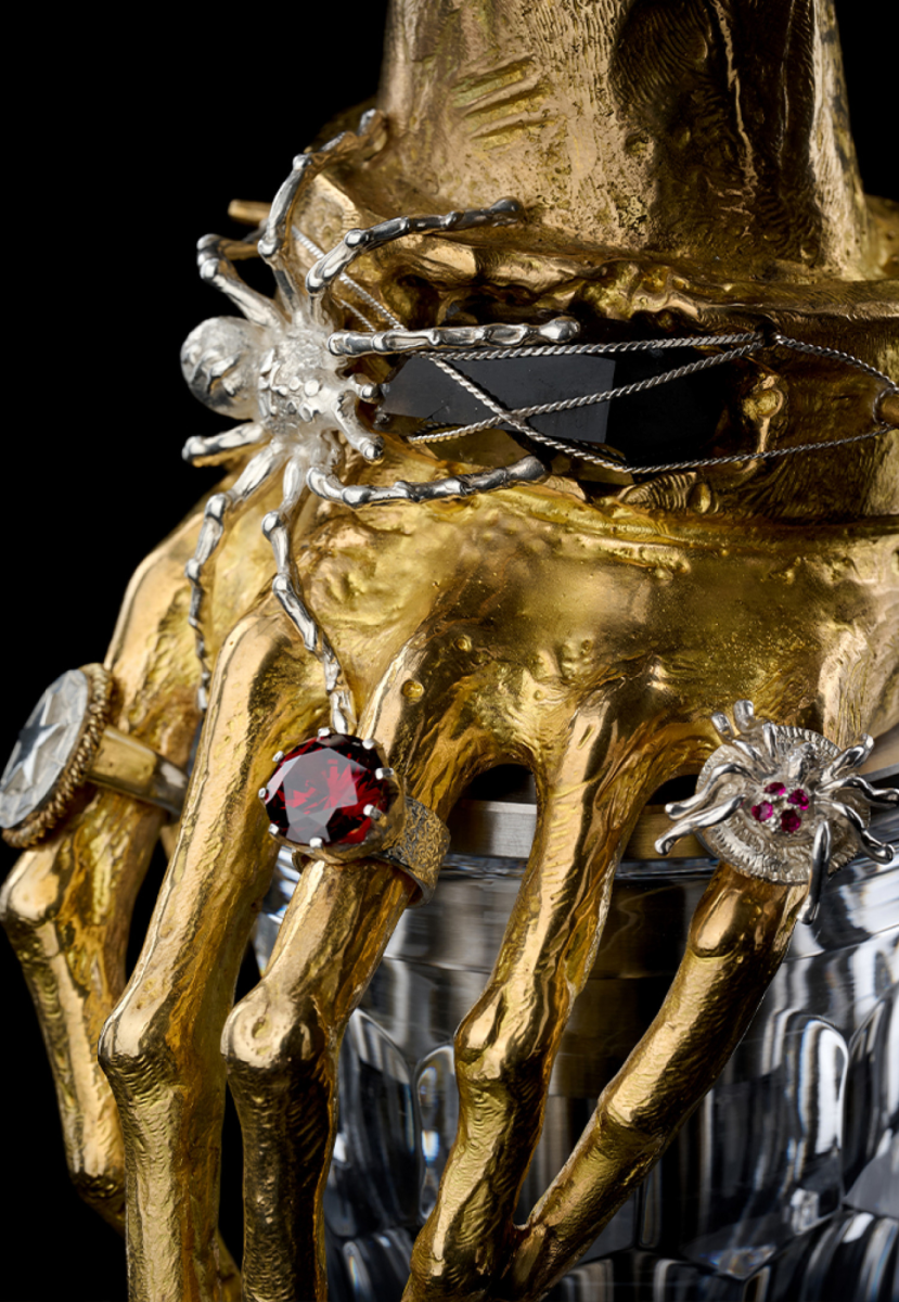 Художественный элемент Hand of Middas — бронза, серебро, морион, циркон, рубины
