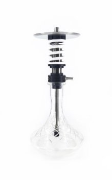 Характеристики кальяна: 1. кальян выполнен из нержавеющей стали aisi 304; 2. декоративная пружина сделана из алюминия, покрытапорошковой краской; гайки выполнены из полиацеталя; 3. полностью разборная модель; 4. высота на колбе 45 см; 5. высота шахты 23 см; 6. разборная погружная шахта, высота погружной части 19, 5 см; 7. съемный диффузор; 8. магнитный коннектор; 9. диаметр шахты 11 мм; 10. диаметр основания под уплотнитель 38 мм; 11. круглое блюдце с гравировкой (3 вида): диаметр 180 мм, толщина 1 мм; 12. мундштук из нержавеющей стали: длина 350 мм, внутренний диаметр - 11 мм.