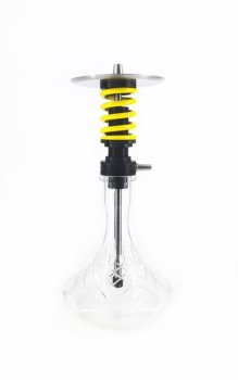 Характеристики кальяна: 1. кальян выполнен из нержавеющей стали aisi 304; 2. декоративная пружина сделана из алюминия, покрытапорошковой краской; гайки выполнены из полиацеталя; 3. полностью разборная модель; 4. высота на колбе 45 см; 5. высота шахты 23 см; 6. разборная погружная шахта, высота погружной части 19, 5 см; 7. съемный диффузор; 8. магнитный коннектор; 9. диаметр шахты 11 мм; 10. диаметр основания под уплотнитель 38 мм; 11. круглое блюдце с гравировкой (3 вида): диаметр 180 мм, толщина 1 мм; 12. мундштук из нержавеющей стали: длина 350 мм, внутренний диаметр - 11 мм.