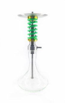 Характеристики кальяна: 1. кальян выполнен из нержавеющей стали aisi 304; 2. декоративная пружина и гайки сделаны из алюминия, покрыты порошковой краской; 3. полностью разборная модель, состоящая из 14 частей; 4. высота на колбе 50 см; 5. высота шахты 28 см; 6. высота погружной части 22 см; 7. съемный диффузор; 8. магнитный коннектор; 9. диаметр шахты 11 мм; 10. диаметр основания под уплотнитель 38 мм; 11. круглое блюдце с гравировкой: диаметр 200мм, толщина 1мм; 12. мундштук из нержавеющей стали: длина 350 мм, внутренний диаметр - 11 мм.